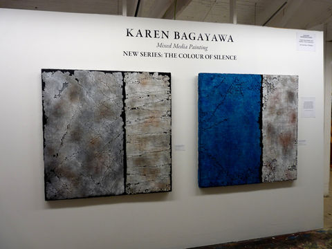 I recently completed this commission for a Tsawwassen home. These 24" x 60" pieces explore washes of titanium white, pearlescent white, light pthalo blue, grey tones and raw sienna.